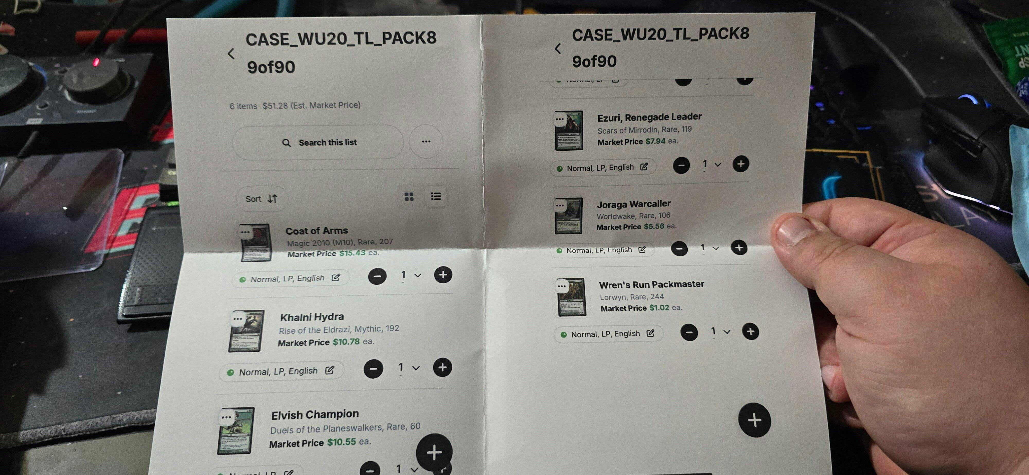 They advertise that if you get a $50 pack you will get $50 in value. And they delivered as advertised as you can see in the pics there was a value(at the time) of $51.28, and appeared to be a theme pack. This little pack is a great starter for my kiddo to get him started on a dual commander elf deck.